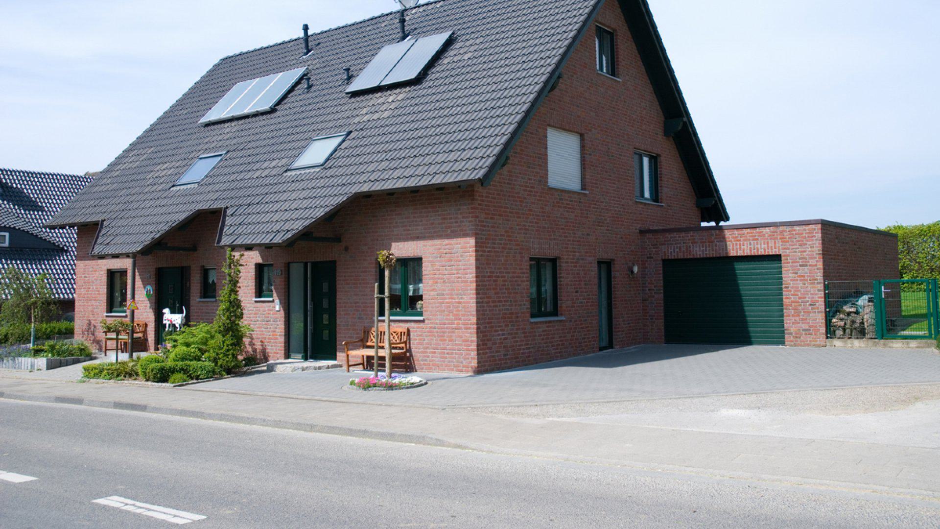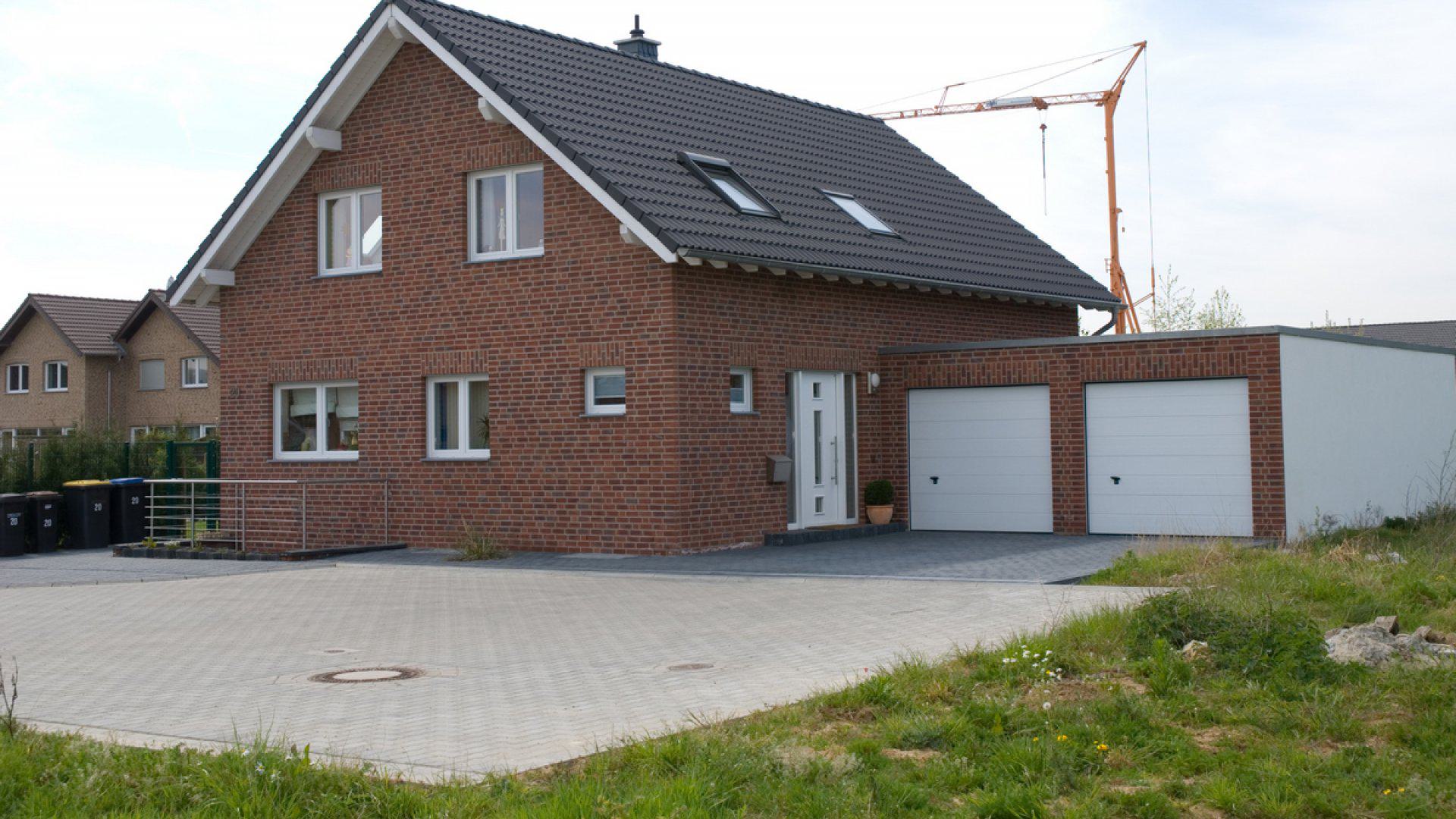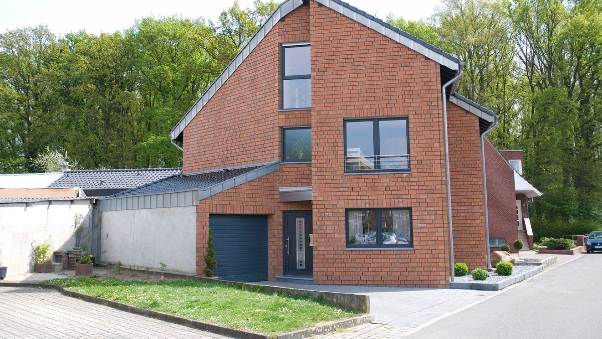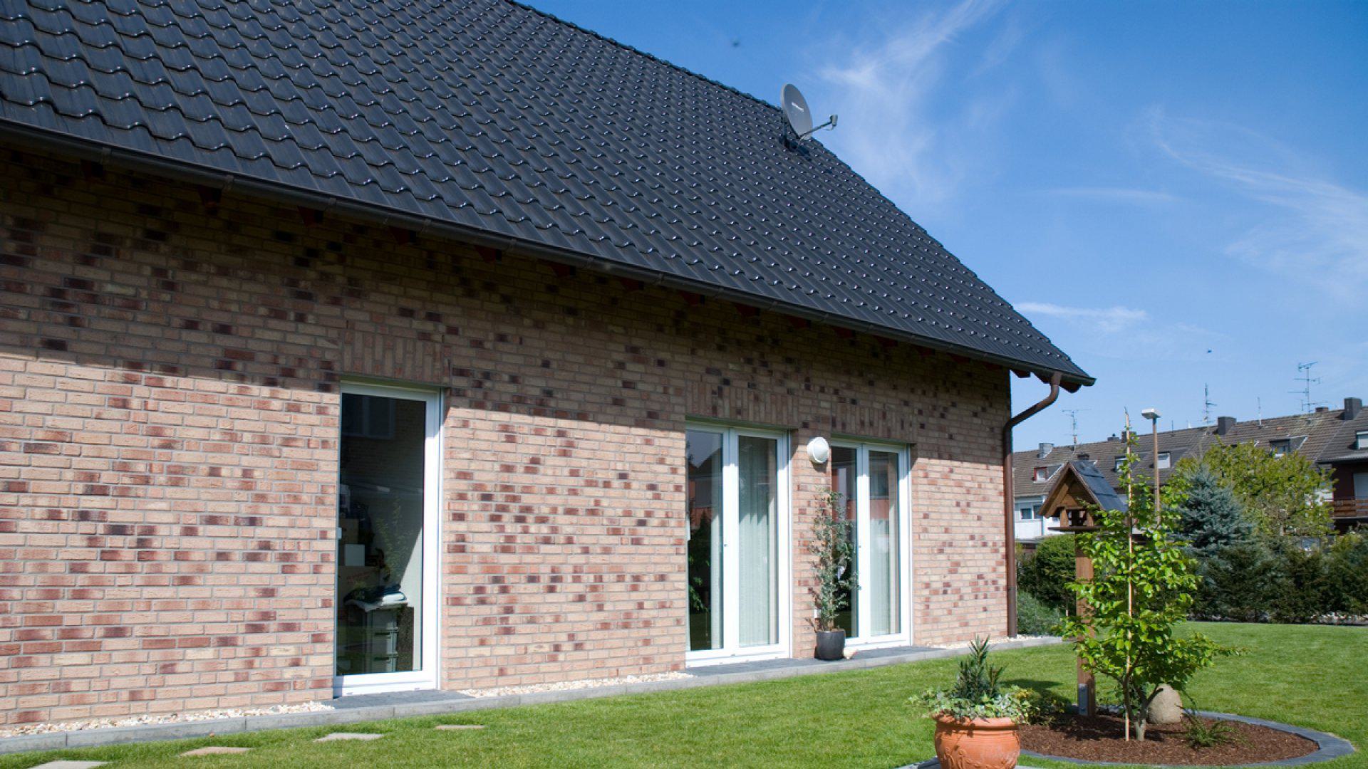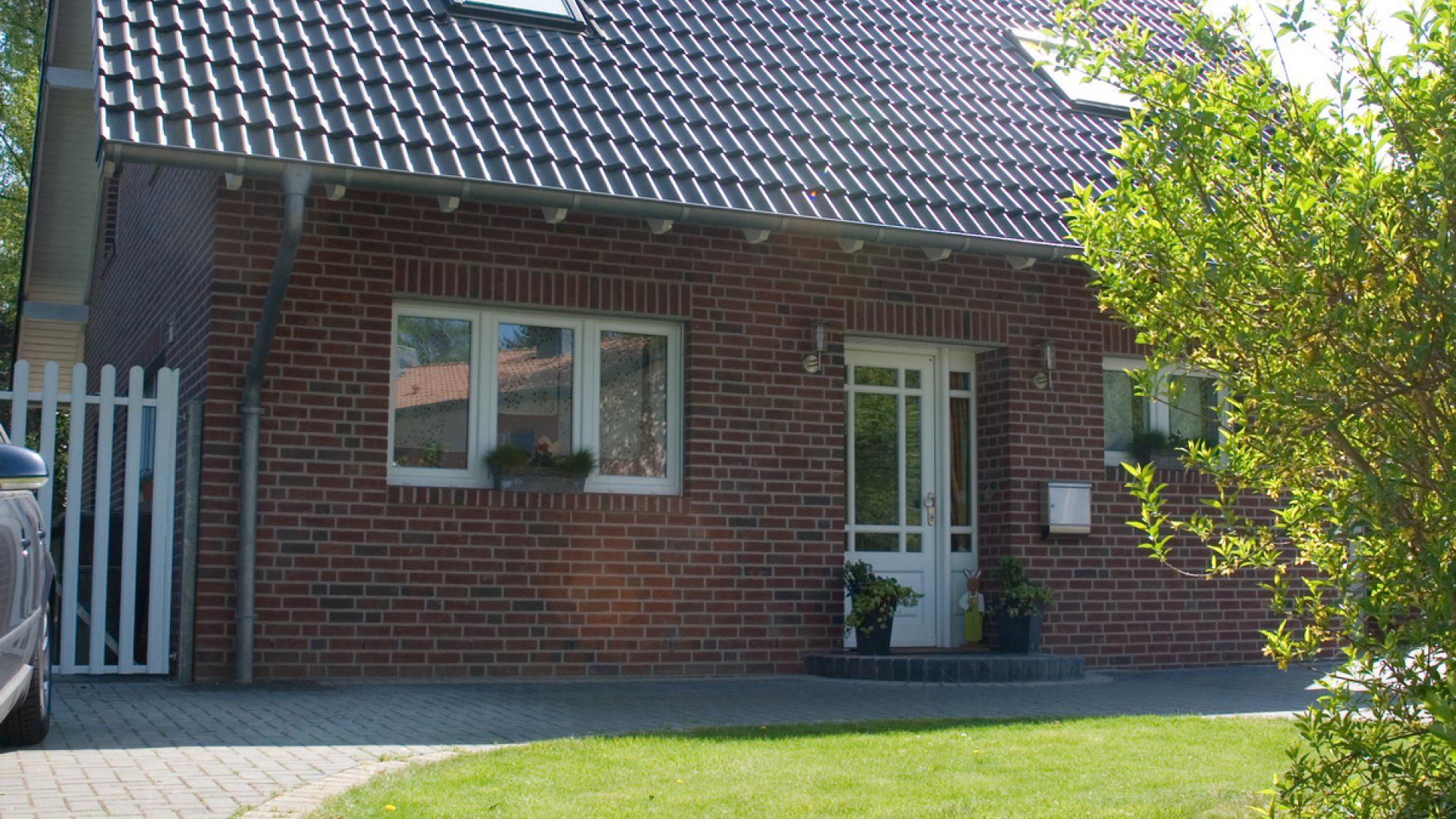Vollunterkellertes Einfamilienhaus in 1 1/2 geschossiger bauweise mit Fassade aus großformatigem Klinker und Wärmedämmverbundssystem