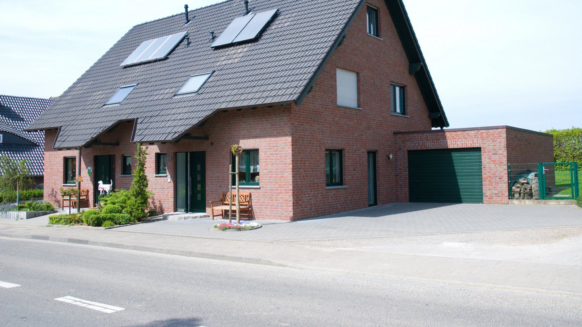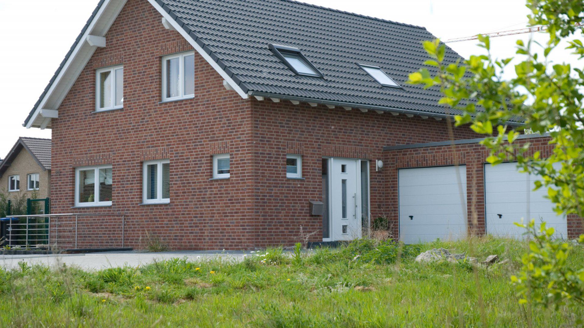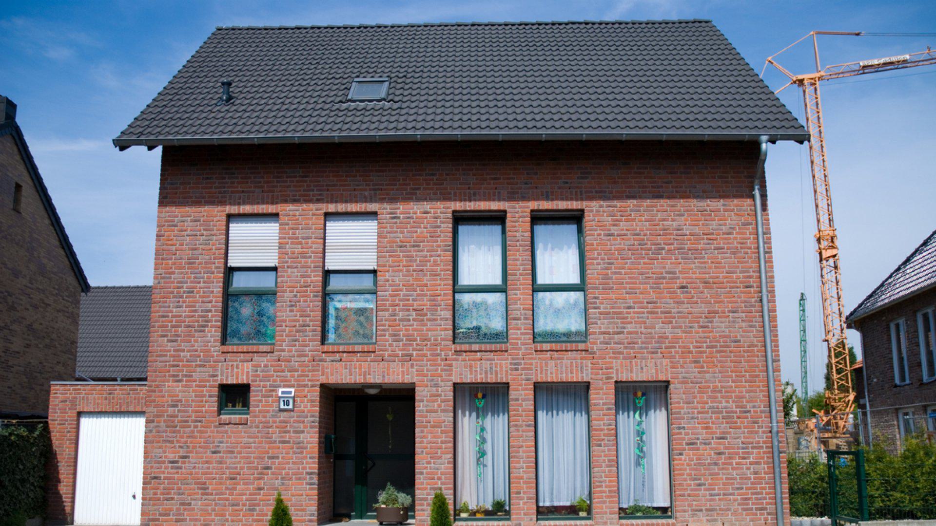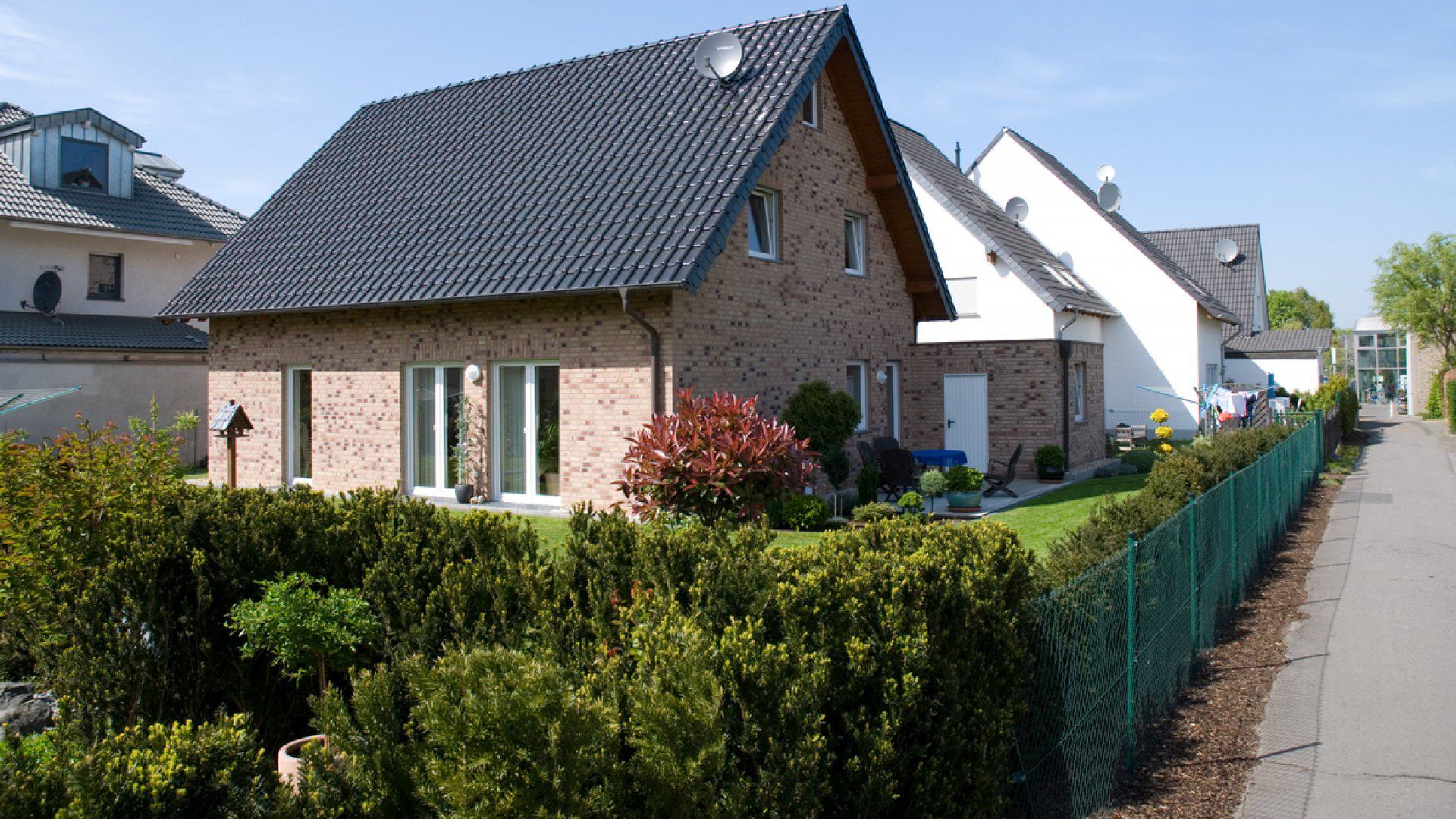 Vollunterkellertes Einfamilienhaus in 1 1/2 geschossiger bauweise mit Fassade aus großformatigem Klinker und Wärmedämmverbundssystem