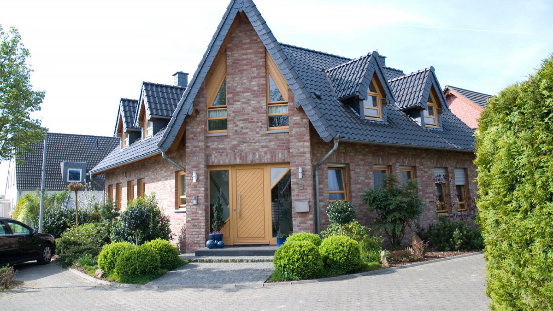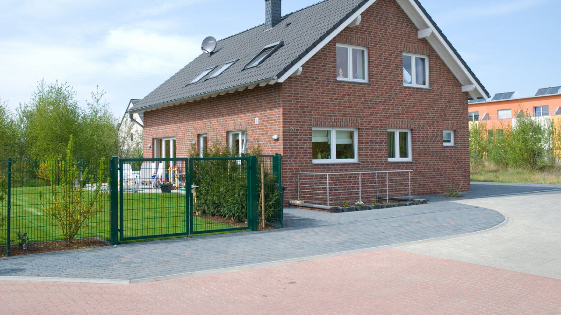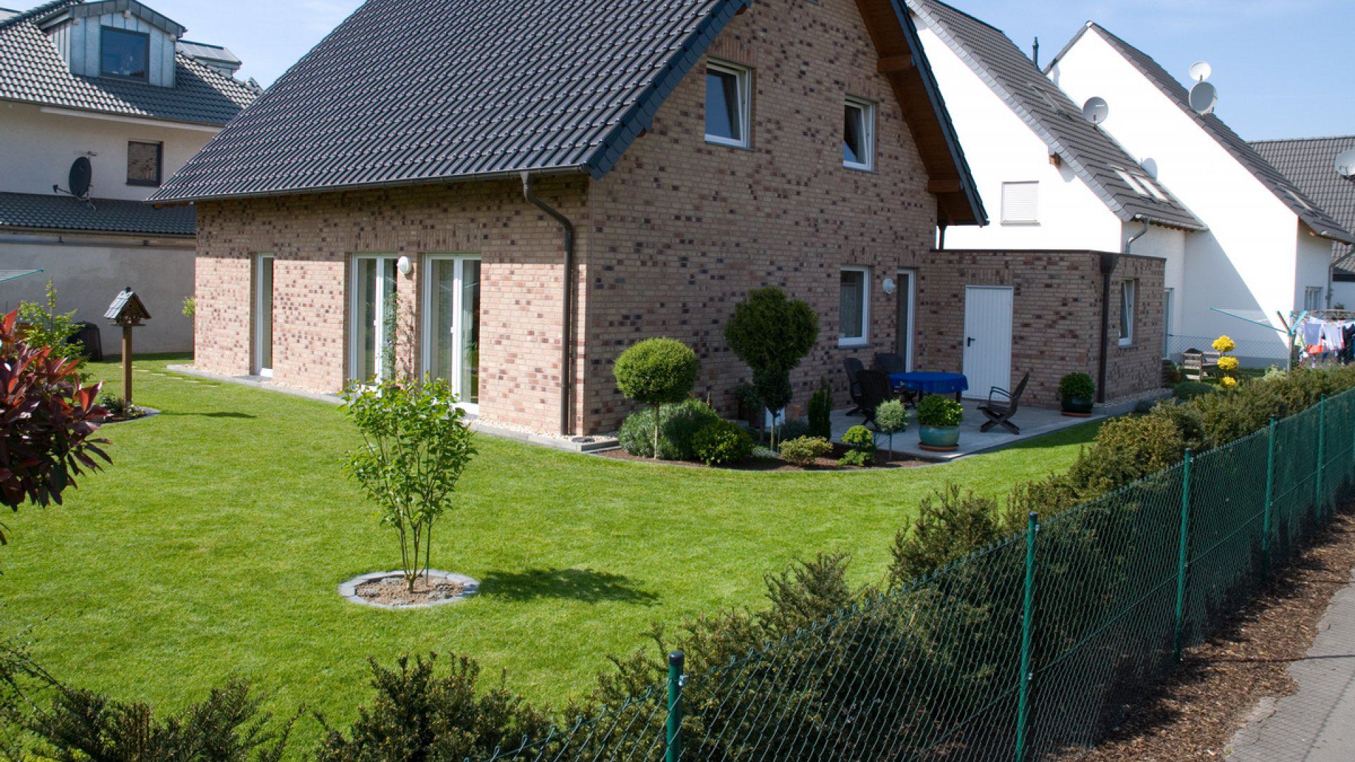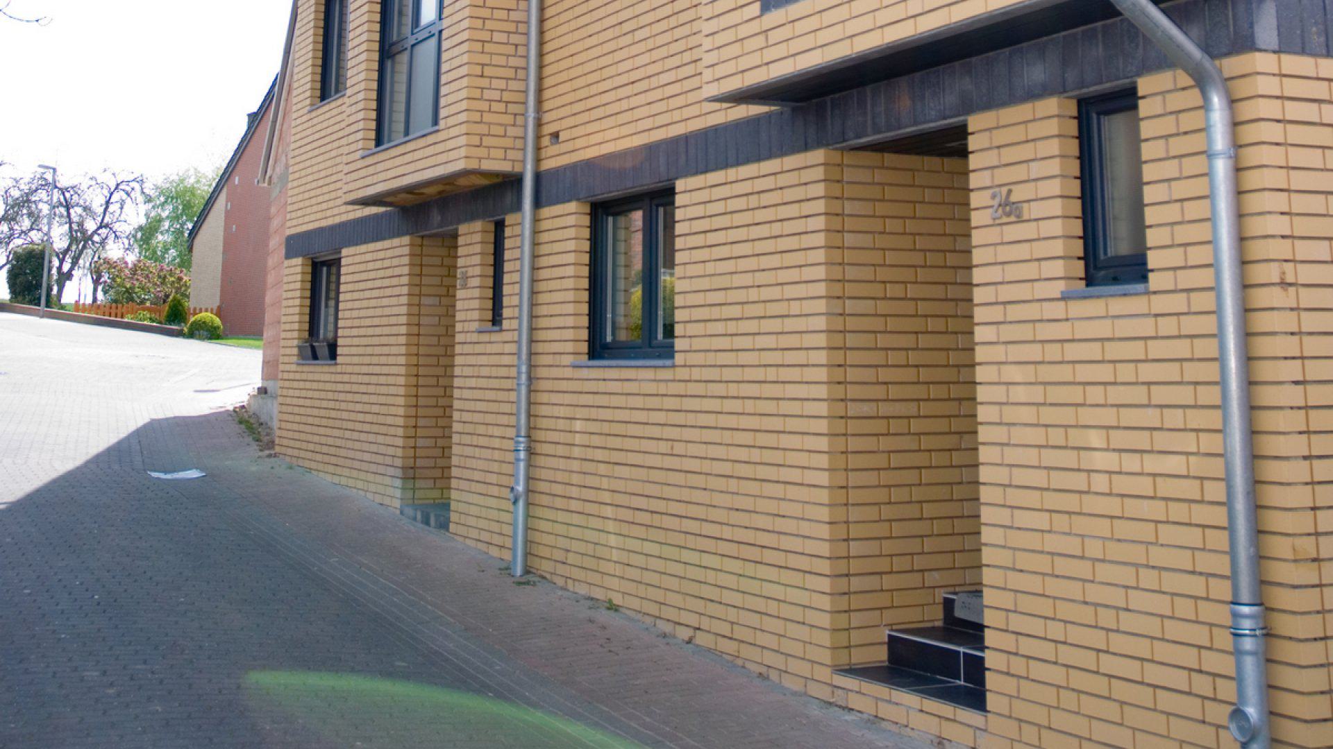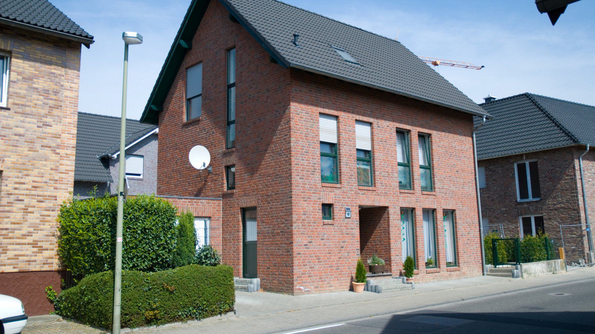 Vollunterkellertes Einfamilienhaus in 1 1/2 geschossiger bauweise mit Fassade aus großformatigem Klinker und Wärmedämmverbundssystem