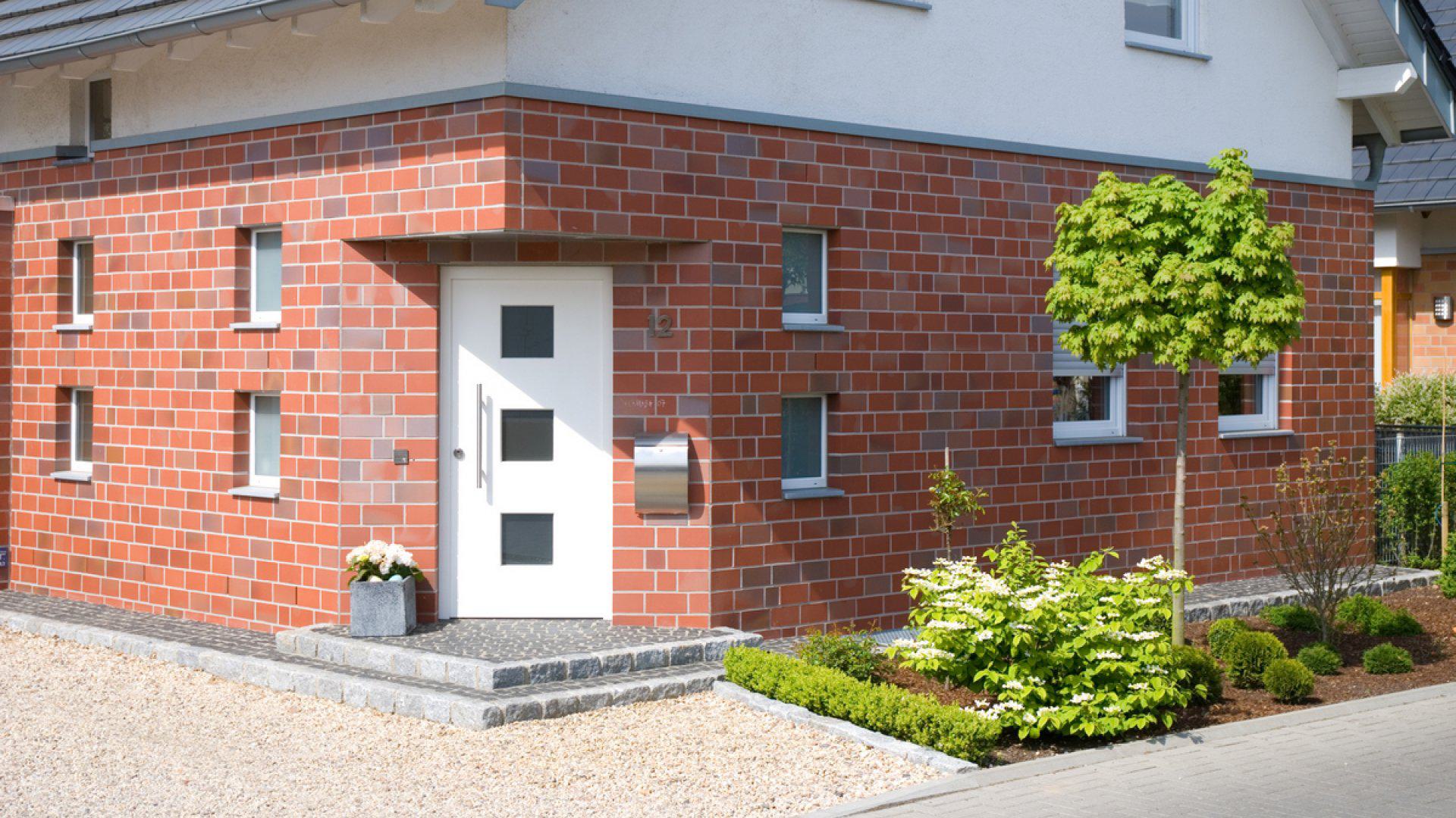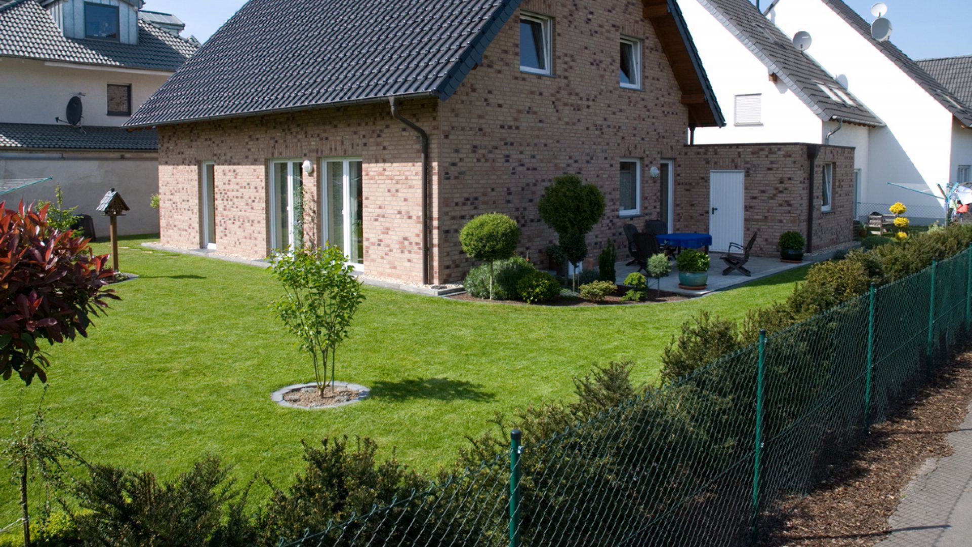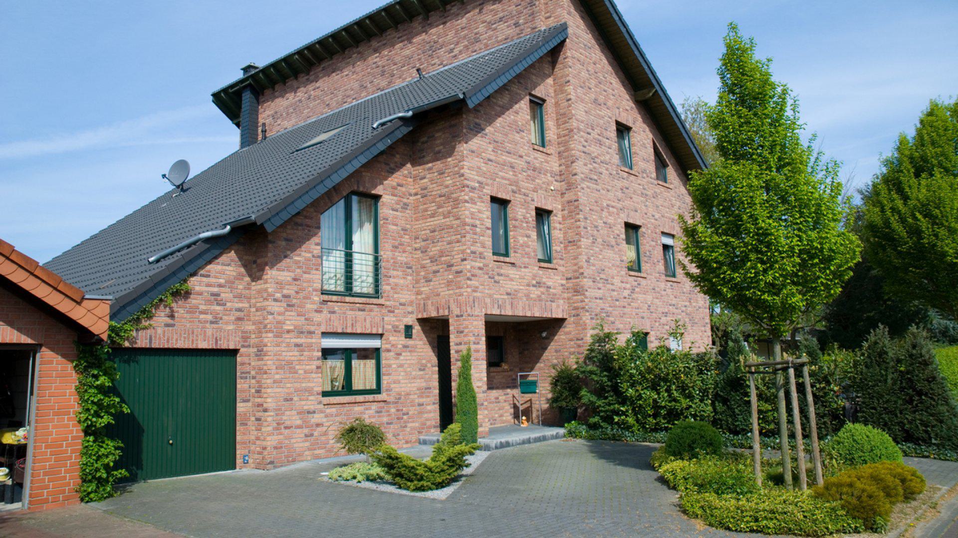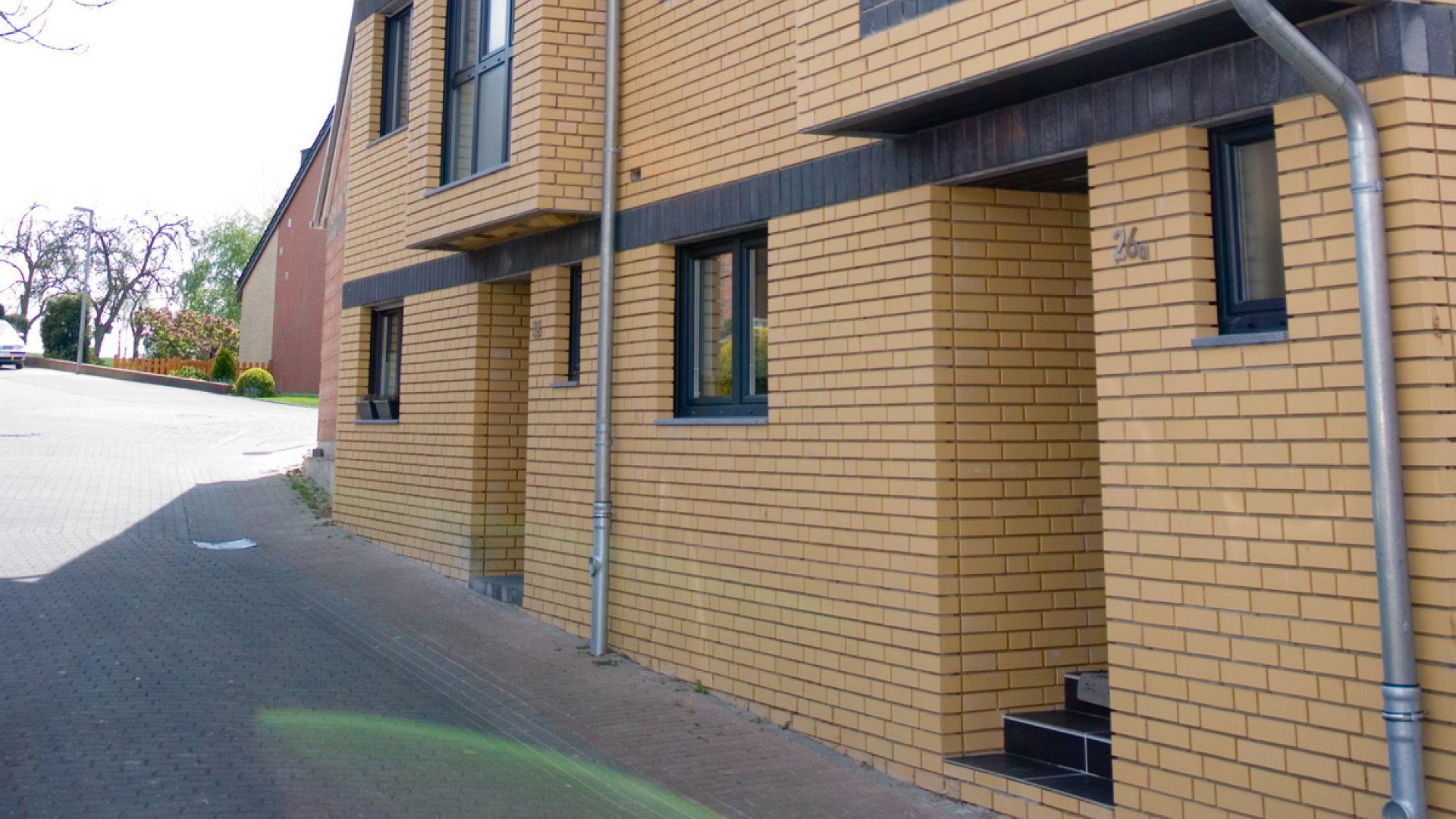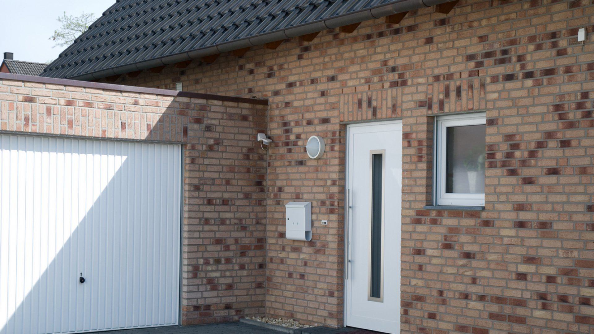 Vollunterkellertes Einfamilienhaus in 1 1/2 geschossiger bauweise mit Fassade aus großformatigem Klinker und Wärmedämmverbundssystem