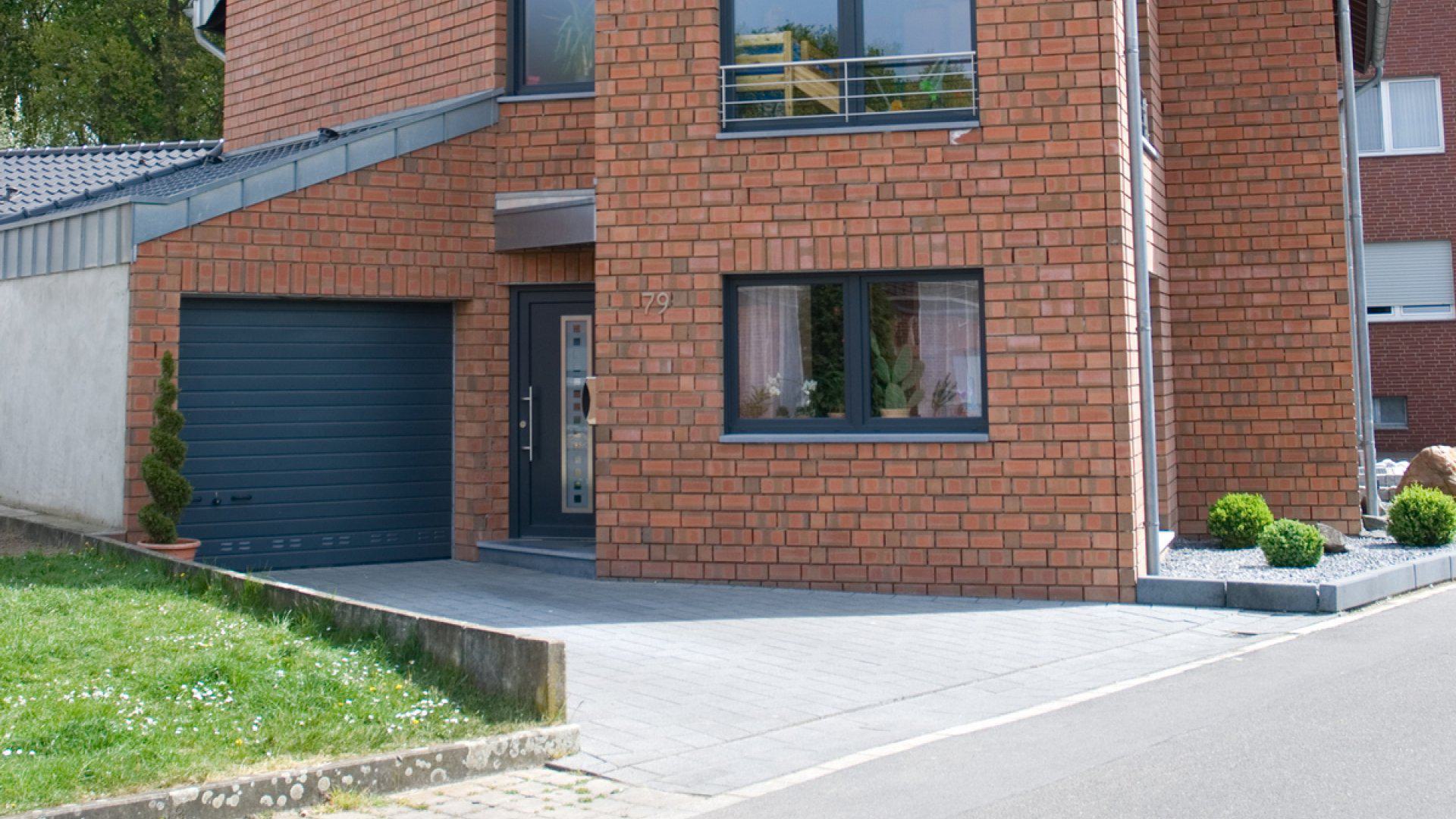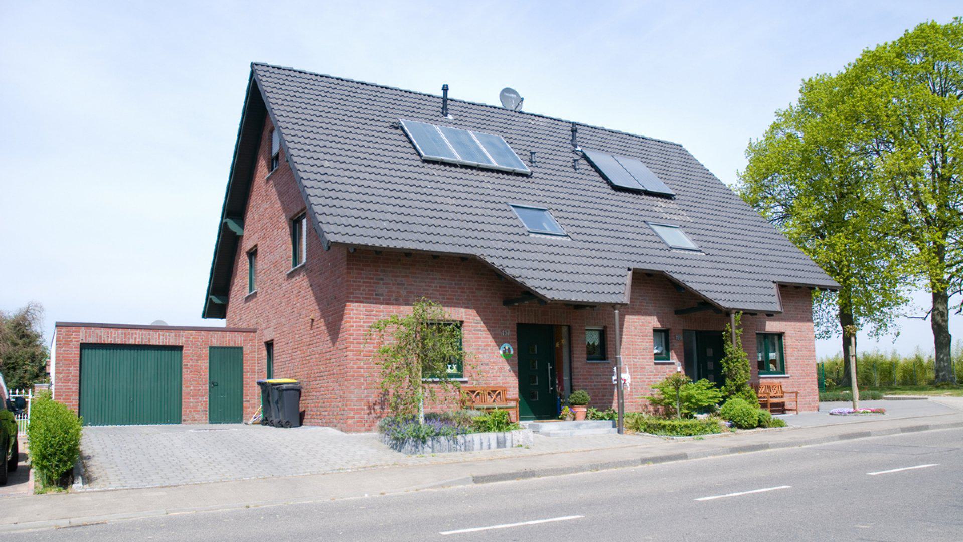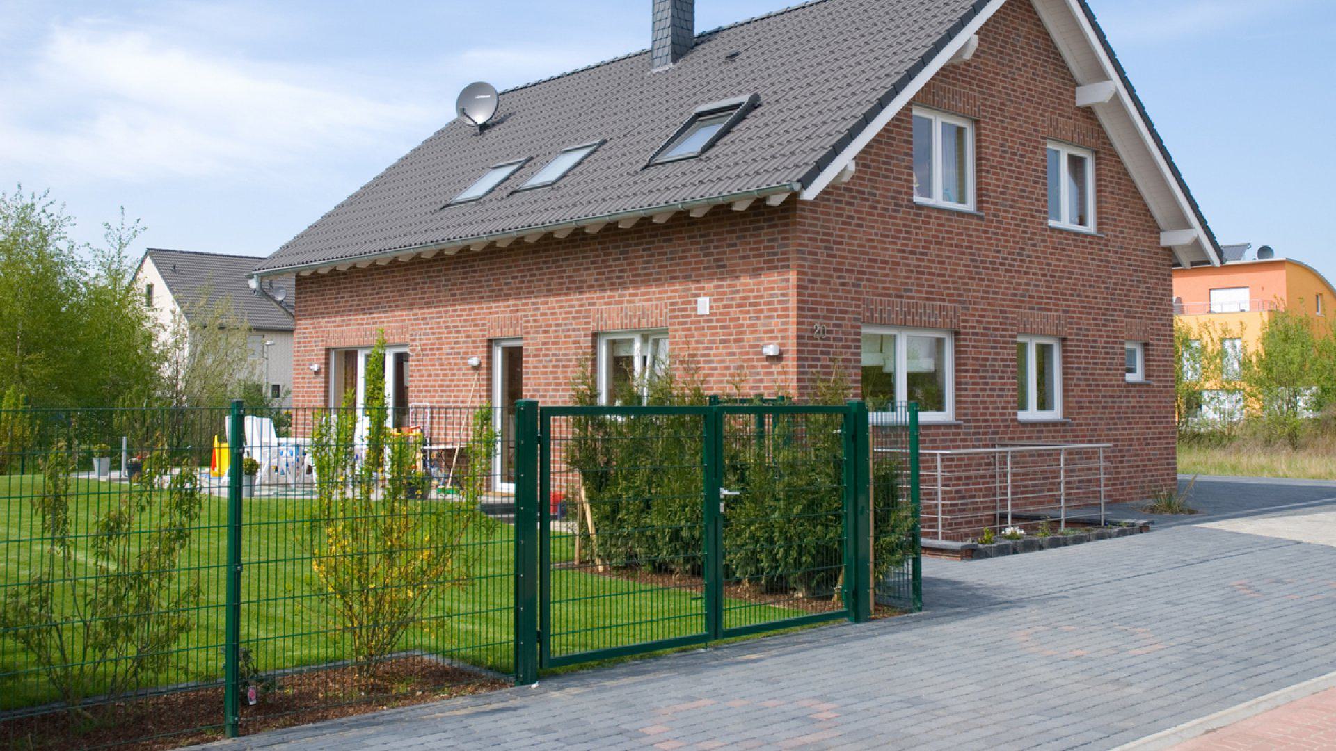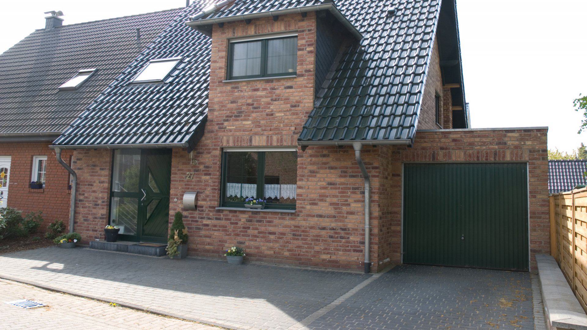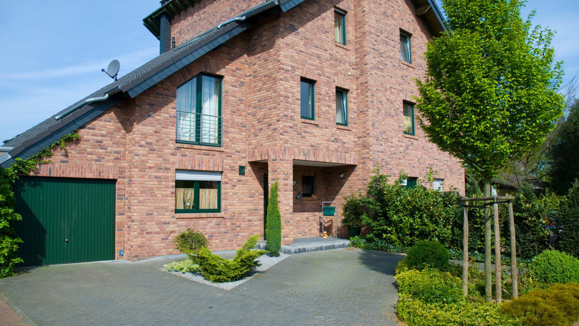 Vollunterkellertes Einfamilienhaus in 1 1/2 geschossiger bauweise mit Fassade aus großformatigem Klinker und Wärmedämmverbundssystem