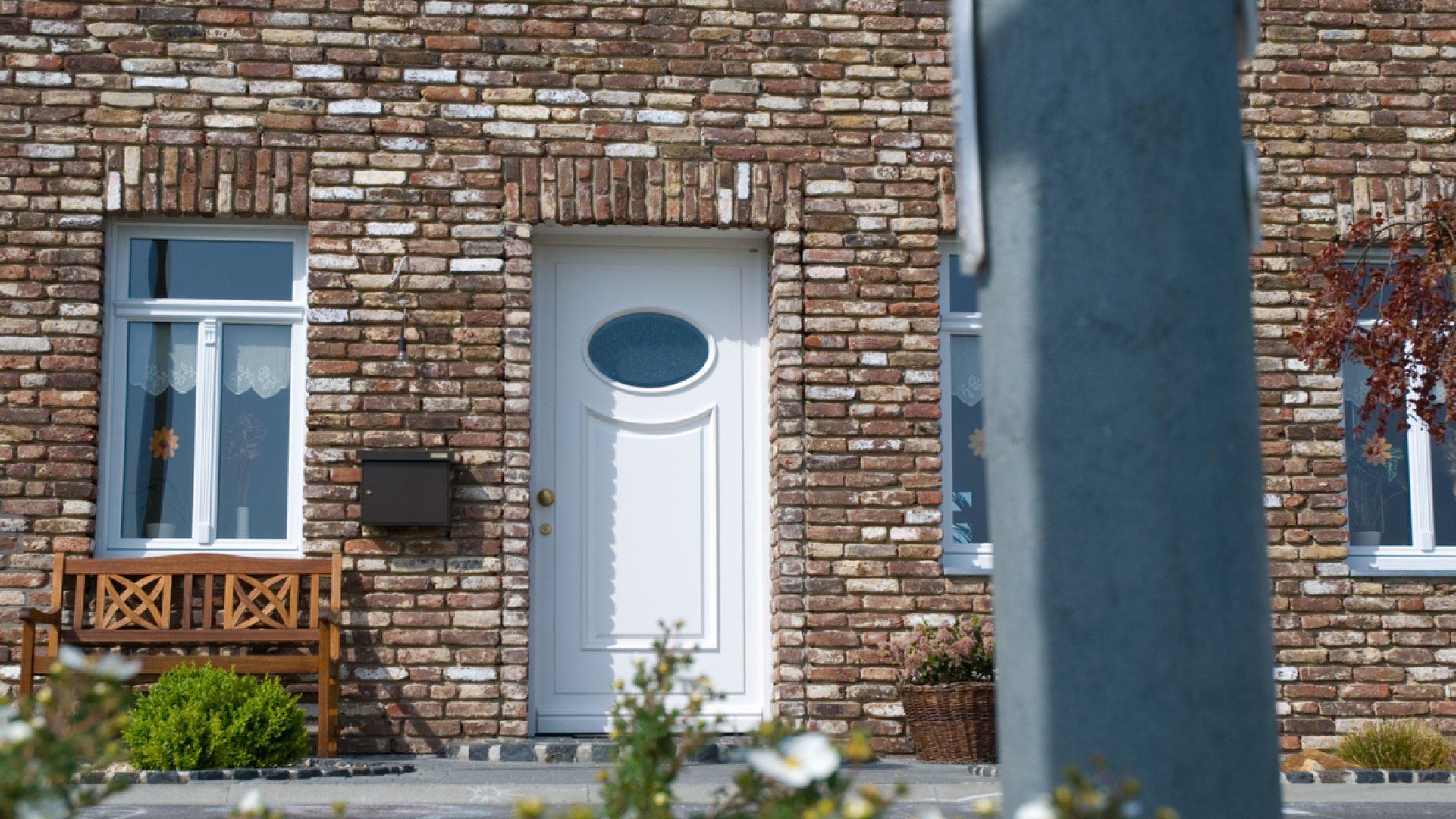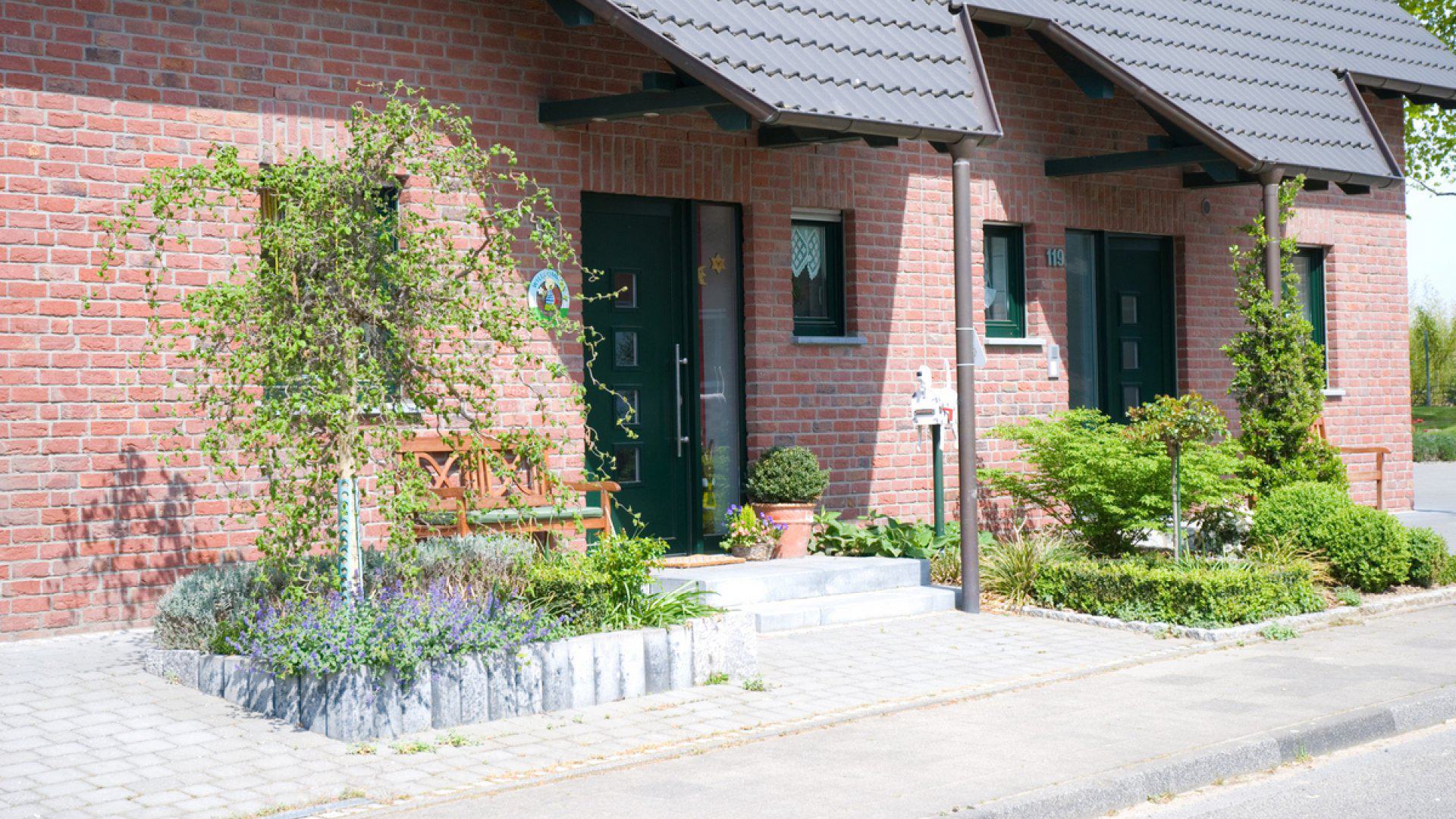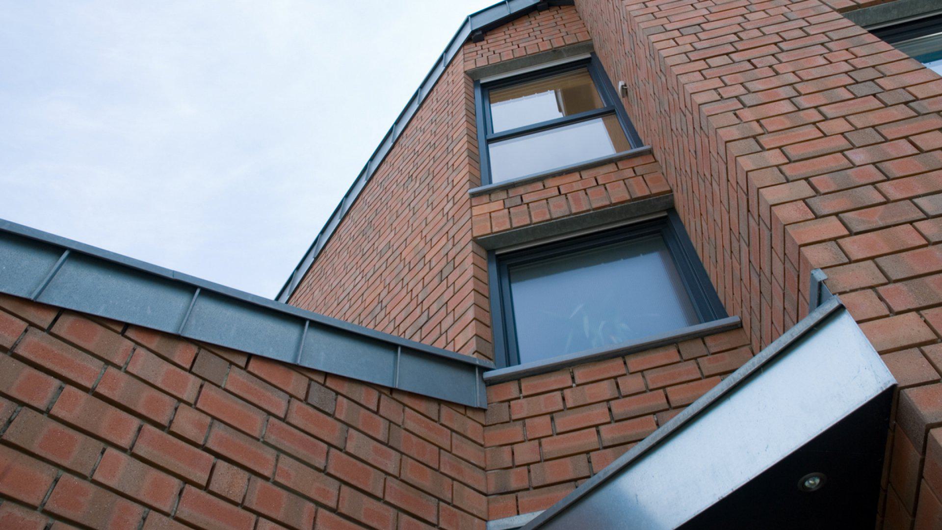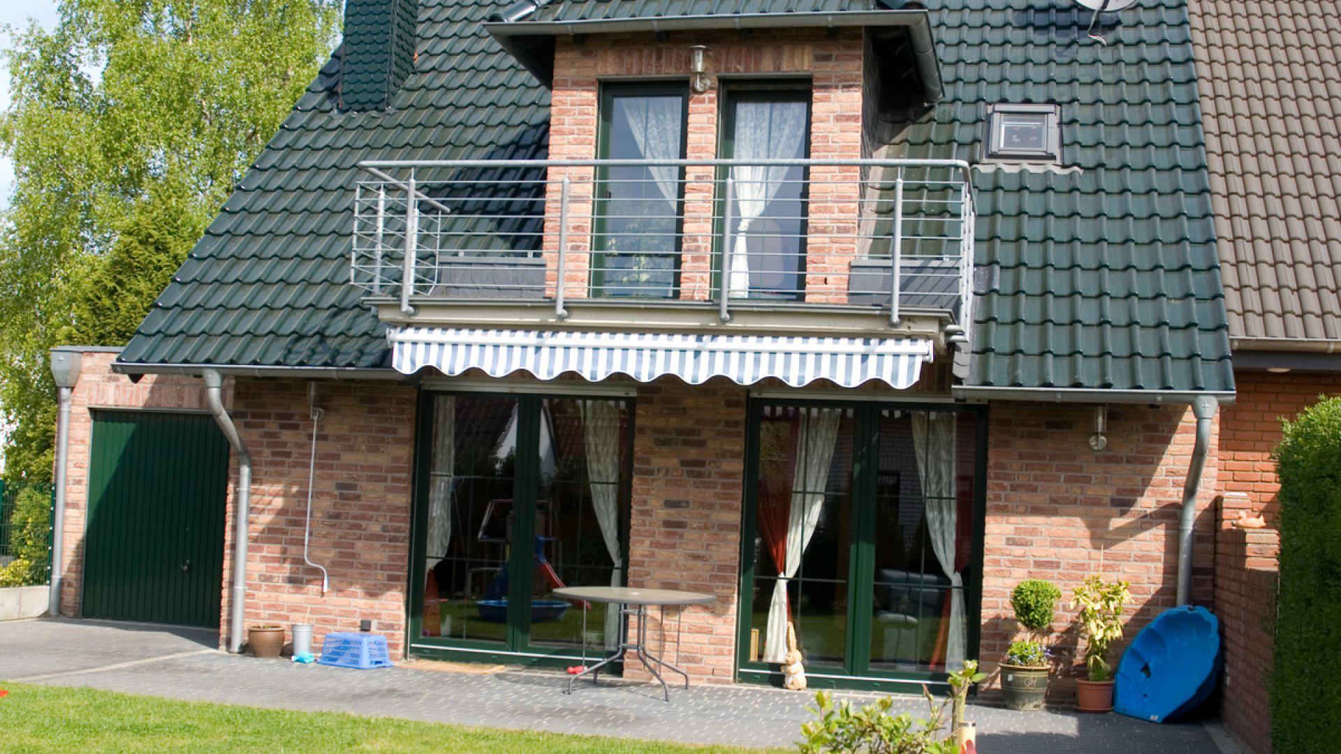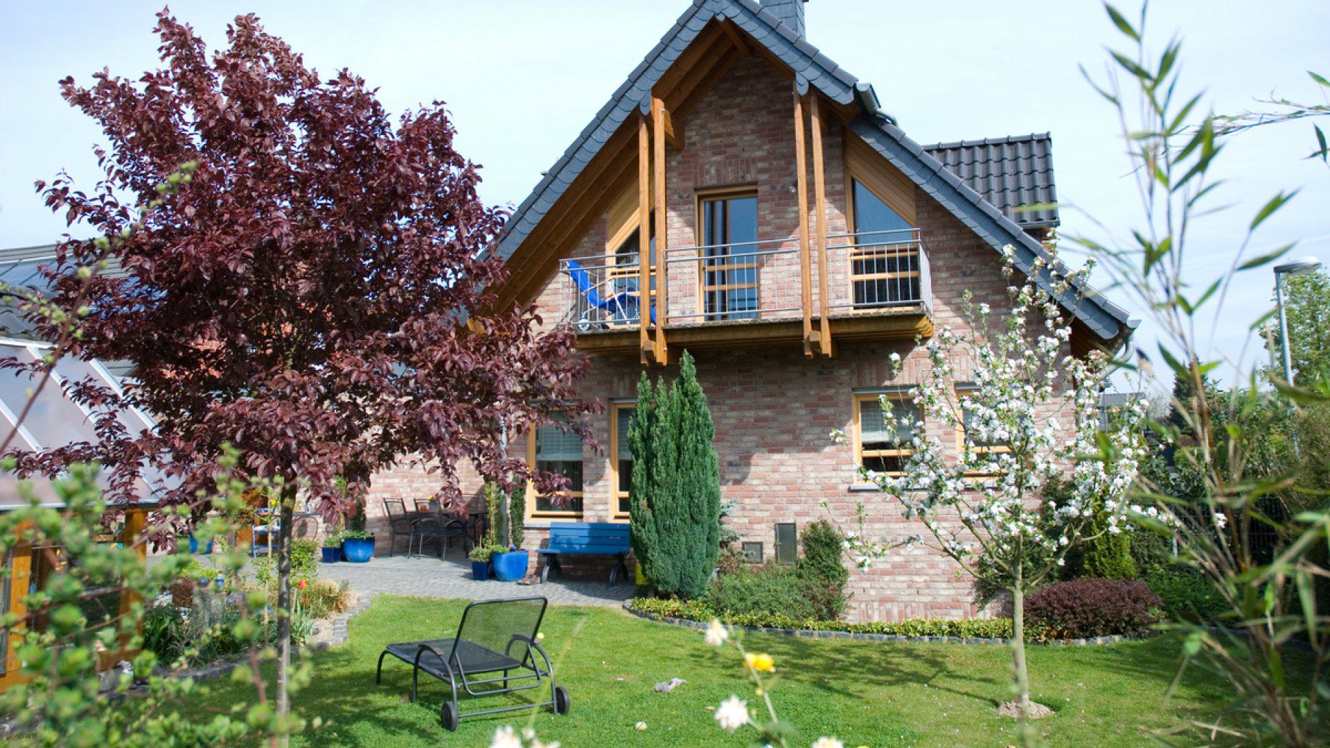 Vollunterkellertes Einfamilienhaus in 1 1/2 geschossiger bauweise mit Fassade aus großformatigem Klinker und Wärmedämmverbundssystem