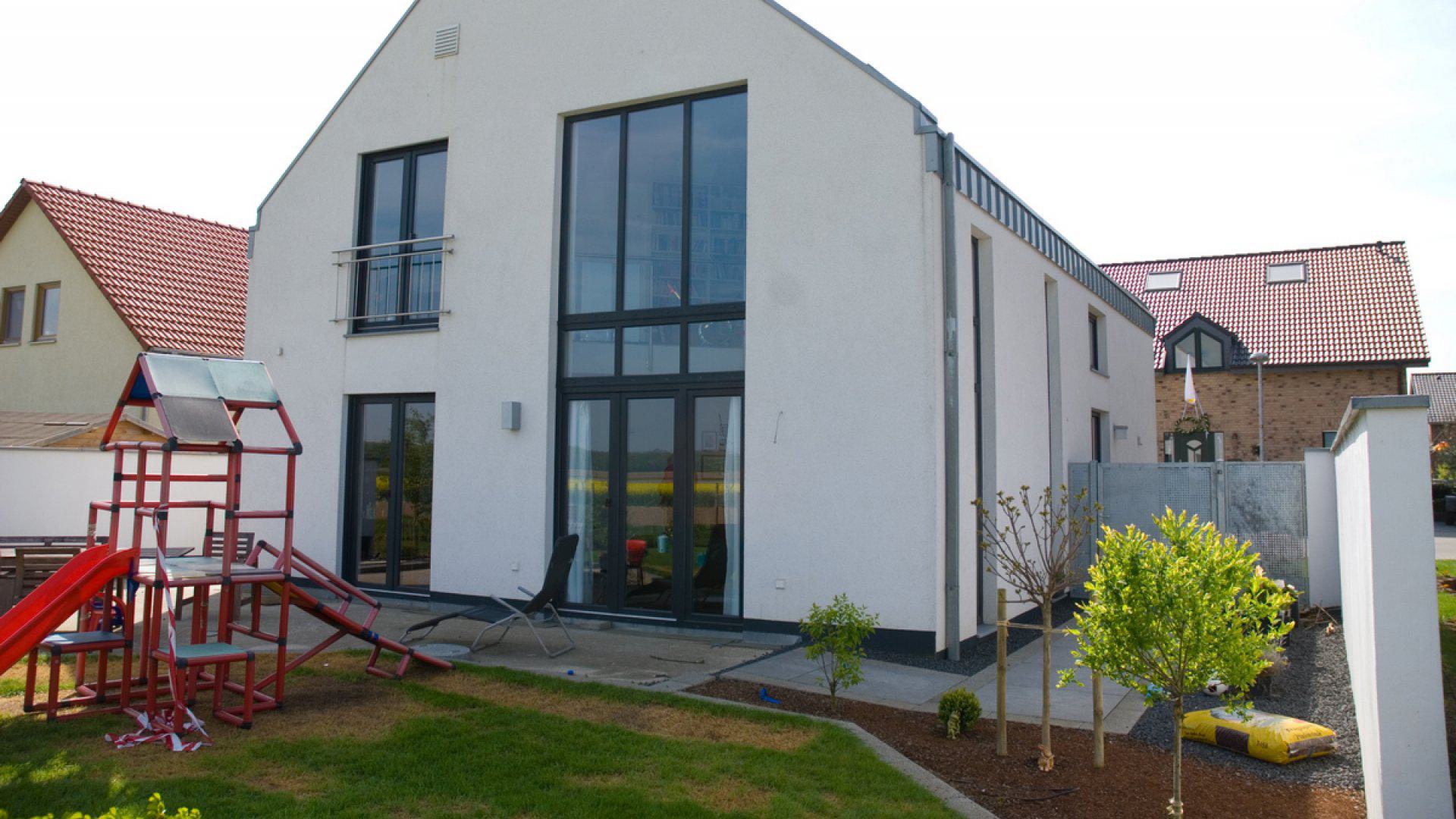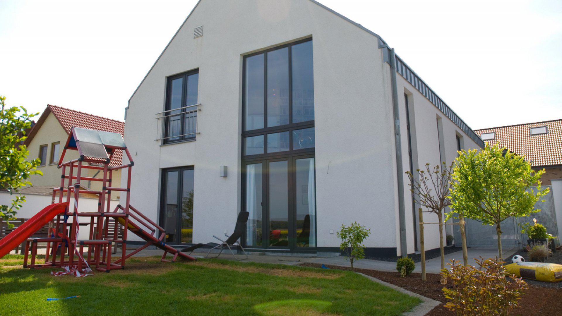 Teilunterkellertes Einfamilienhaus in 1 1/2 geschossiger bauweise ohne Dachüberstand