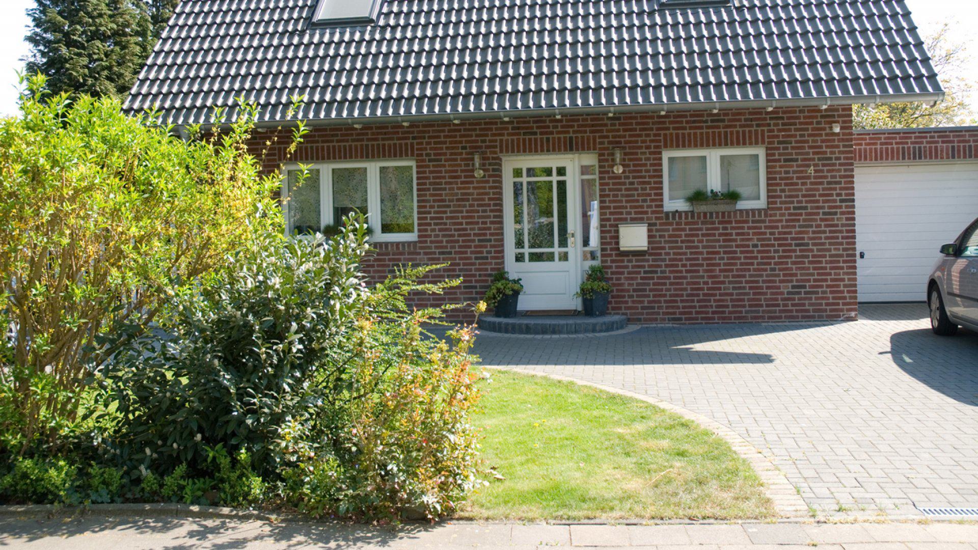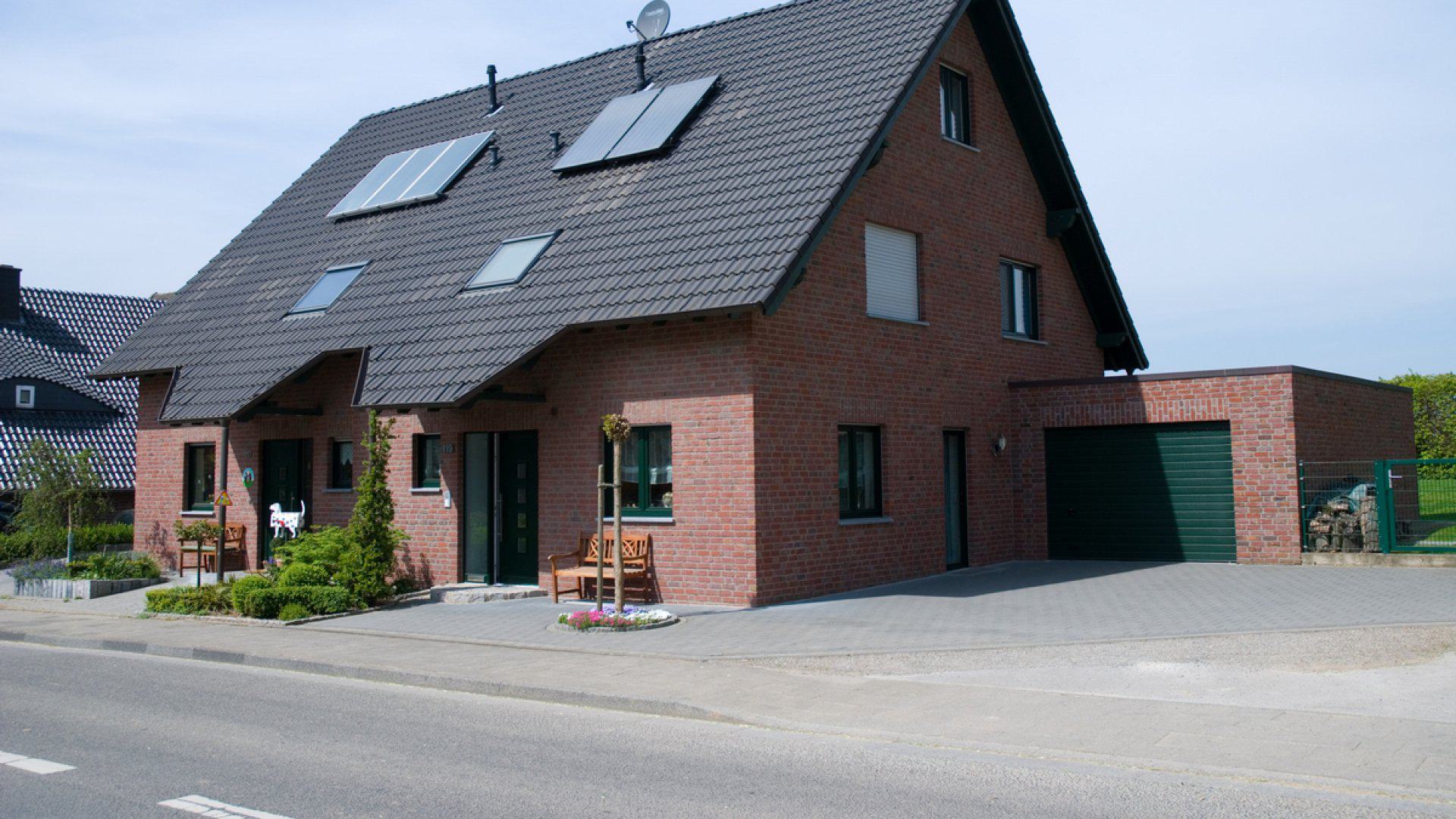 Vollunterkellertes Einfamilienhaus in 1 1/2 geschossiger bauweise mit Fassade aus großformatigem Klinker und Wärmedämmverbundssystem